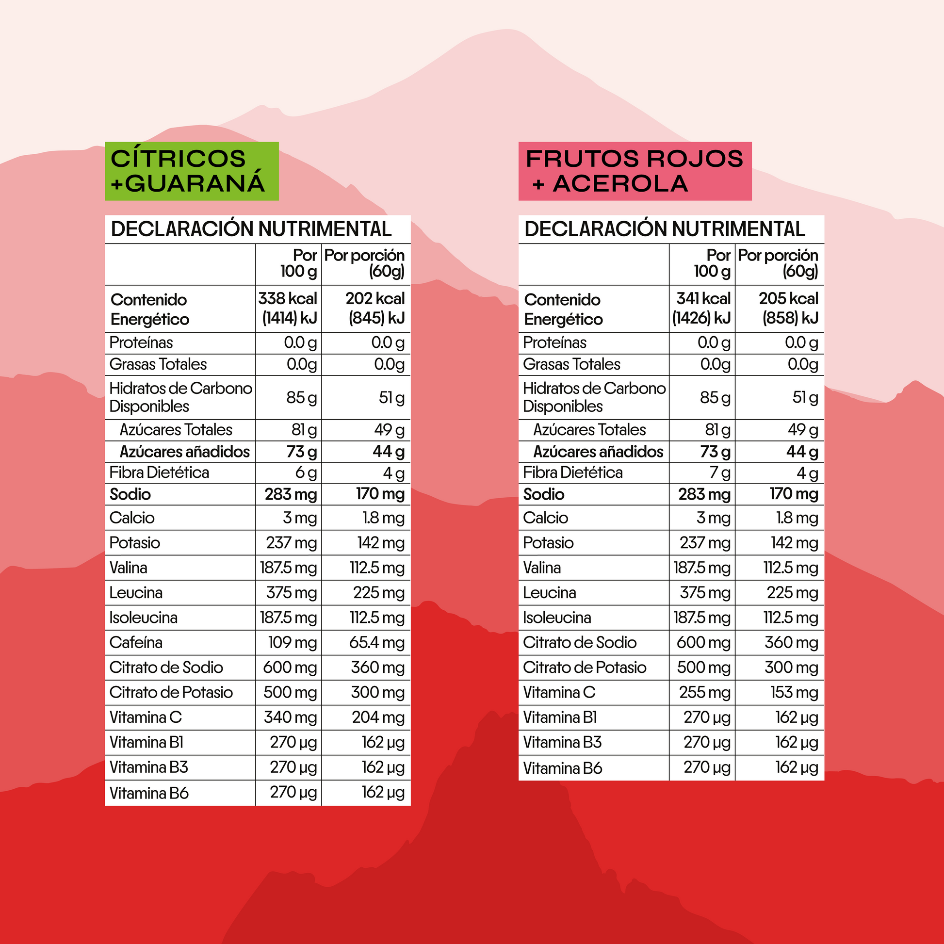 Sabores: Frutos Rojos + Acerola (X6)  y Cítricos +  Guaraná
